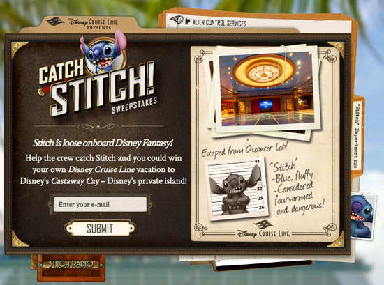 In it, Stitch, the popular character from “Lilo and Stitch,” has escaped from the Oceaneer Lab and is loose aboard the Disney Fantasy cruise ship. Your challenge is to investigate clues and try to catch him before the ship leaves Castaway Cay. You can review evidence in this disappearance case, choose areas to investigate and check back the following day to see if your prediction was correct.