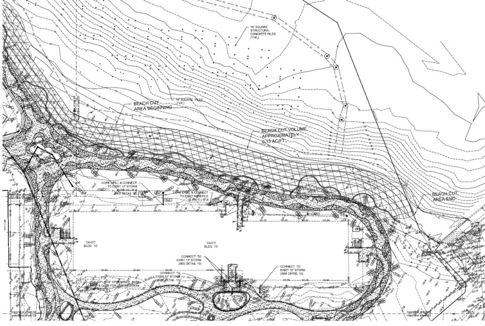 “Work to be conducted on this site includes new parking, vehicular circulation, pedestrian pathways, utilities, and fire access. It also includes installation of pilings along the neighboring lagoon that will support future structures, redesigned landscaping and new amenity areas to serve the building expansions for this resort hotel.”