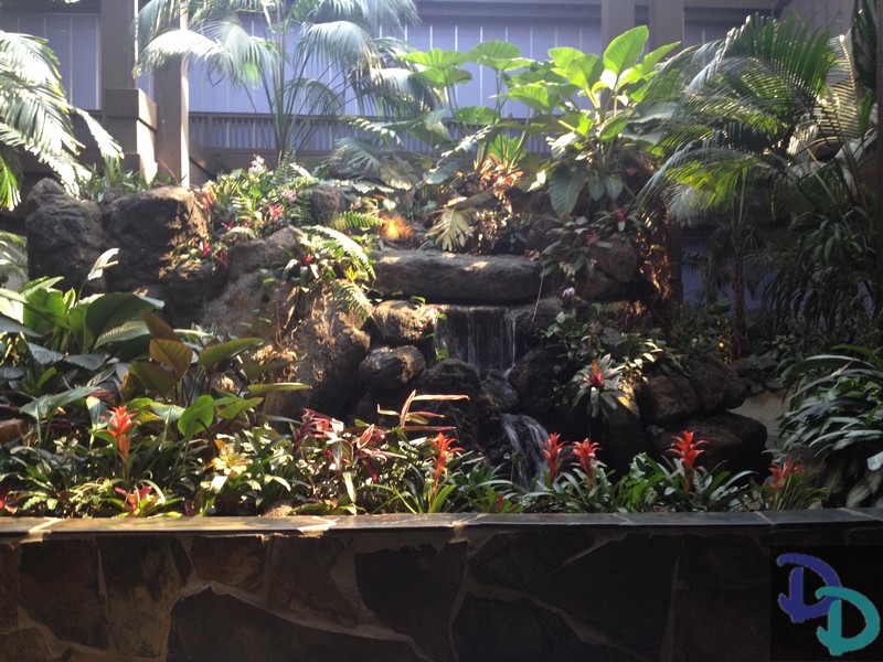 Here is the main floor of the Great Ceremonial House lobby where the Boutiki merchandise shop is located, front desk check-in, and the soon-to-be extinct iconic waterfall that the Polynesian is so well known for.