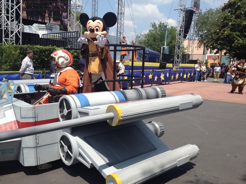 The motorcade ran down the main strip at Disney’s Hollywood Studios and it included Jedi Mickey leading the way along with Chip and Dale as Ewoks, Minnie Mouse as Princess Leia, Donald Duck as a Storm Trooper, and Goofy as Darth Vader.