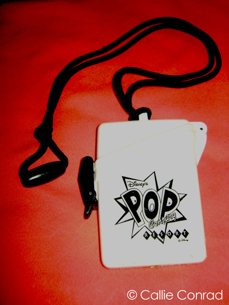 These plastic cases are great to take to the water parks or just out to the pool. They keep keys, cards and cash dry using a rubber seal that latches shut. They are also ideal for a light day at the parks if you don’t have pockets. Waterproof wallets are sold at the Disney Parks and resorts, as well as places such as Walmart and Target.
