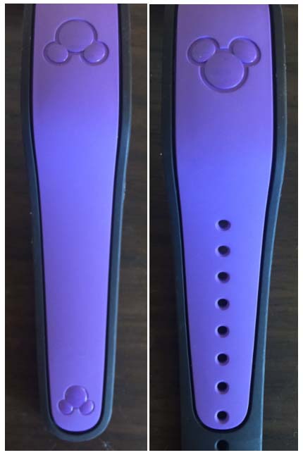 As you can see on this prototype, it is a solid purple MagicBand with a black border, not the typical dark gray. Again though, this is a prototype.