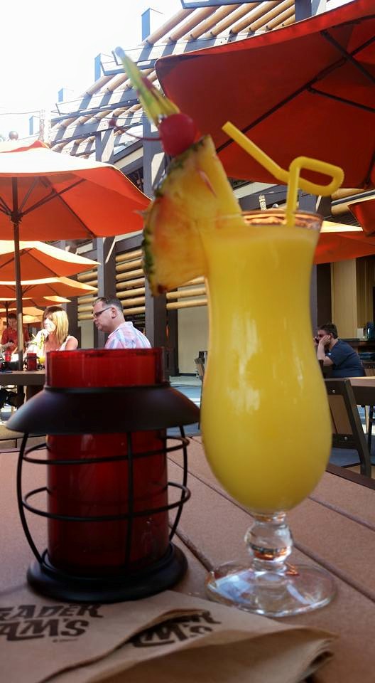 The Spikey Pineapple can only be enjoyed at Trader Sam’s Tiki Terrace, not Trader Sam’s Grog Grotto, which is the outdoor patio section. The tropical oasis provides umbrella-topped seating along with surfboard tables, lush foliage, and tiki statues with a spectacular view of the Seven Seas Lagoon. A calming waterfall further immerses you into paradise as a musician playing music from the islands adds to the overall ambiance. What enhances the whole experience at Trader Sam’s is the Cast. Skippers (waiters) entertain with jokes from The Jungle Cruise and are always having a good time.