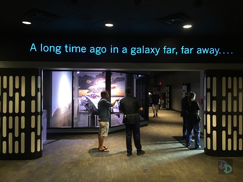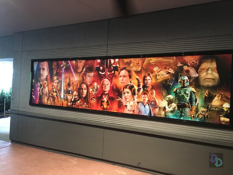There are posters and Star Wars memorabilia spread all around the Launch Bay including in the different rooms, the outside queue line, and all over the place.