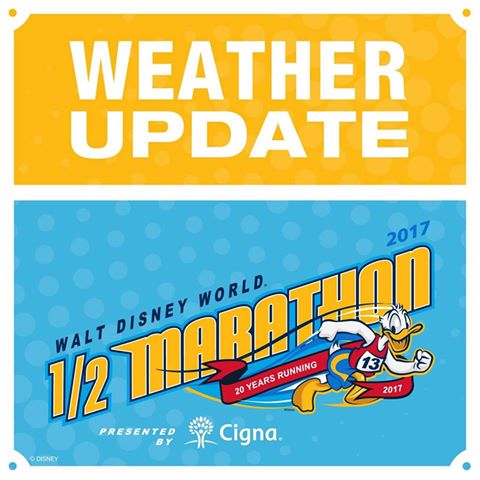 In an abundance of caution, the Walt Disney World Resort has cancelled all running events on Saturday, Jan. 7, 2017 due to weather conditions. This includes the Walt Disney World Half Marathon and the Disney Kids Races. In addition, the runDisney Health & Fitness Expo will delay opening until 11 a.m. While we share our Guests’ obvious disappointment, the safety of our Guests and Cast is most important. Weather tracking has indicated there is an elevated risk of lightning in the area of the racecourse. In addition, there are sections of the course that do not provide immediate access to shelter. Both of these factors have influenced this difficult decision.